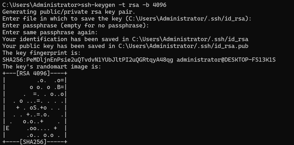 完成后,你会在 ~/.ssh/ (完整目录: C:\Users\Administrator/.ssh/)目录下看到两个文件: